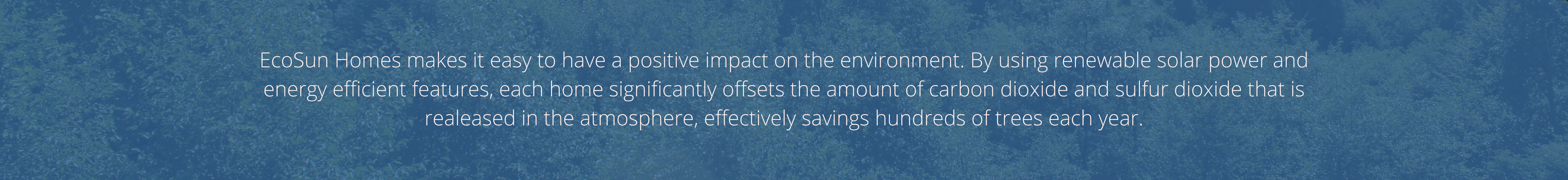 Every EcoSun home offsets up to 5 pounds of sulphur dioxide each year, lowering the amount of pollution in our atmosphere. Our homes work to make the world a cleaner and greener place.