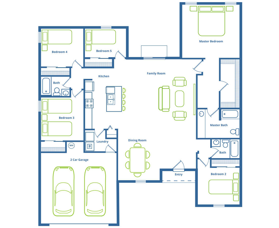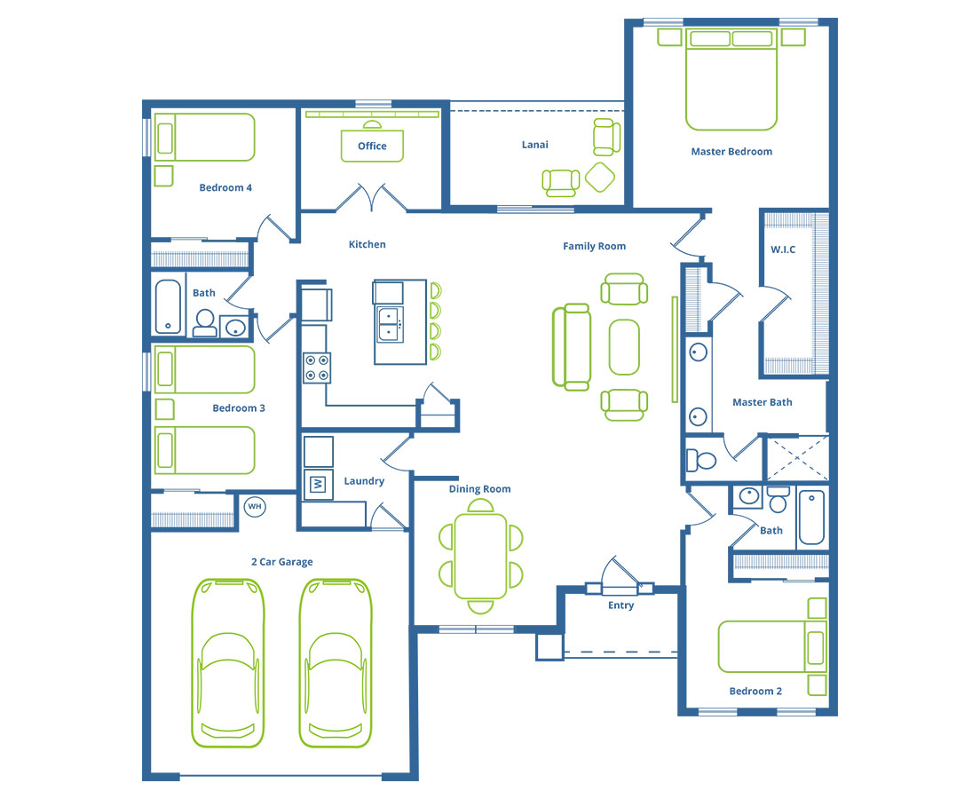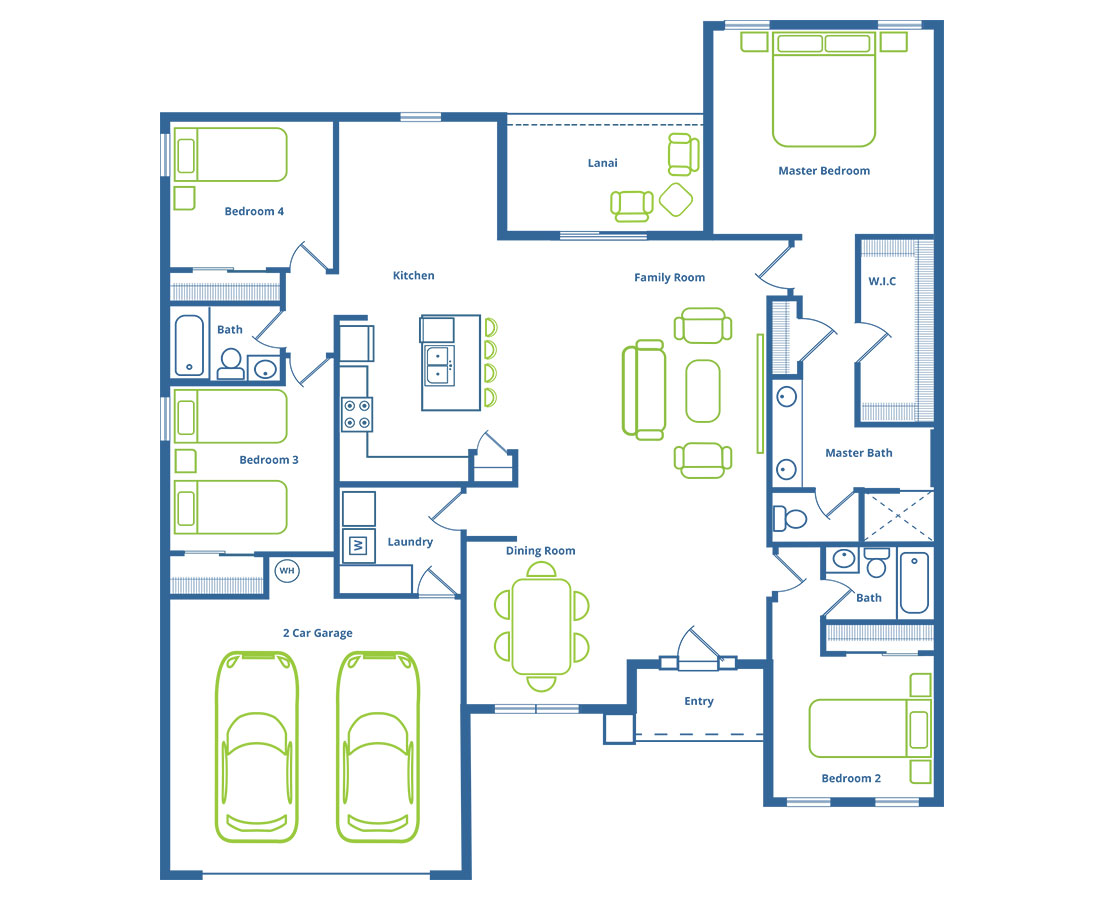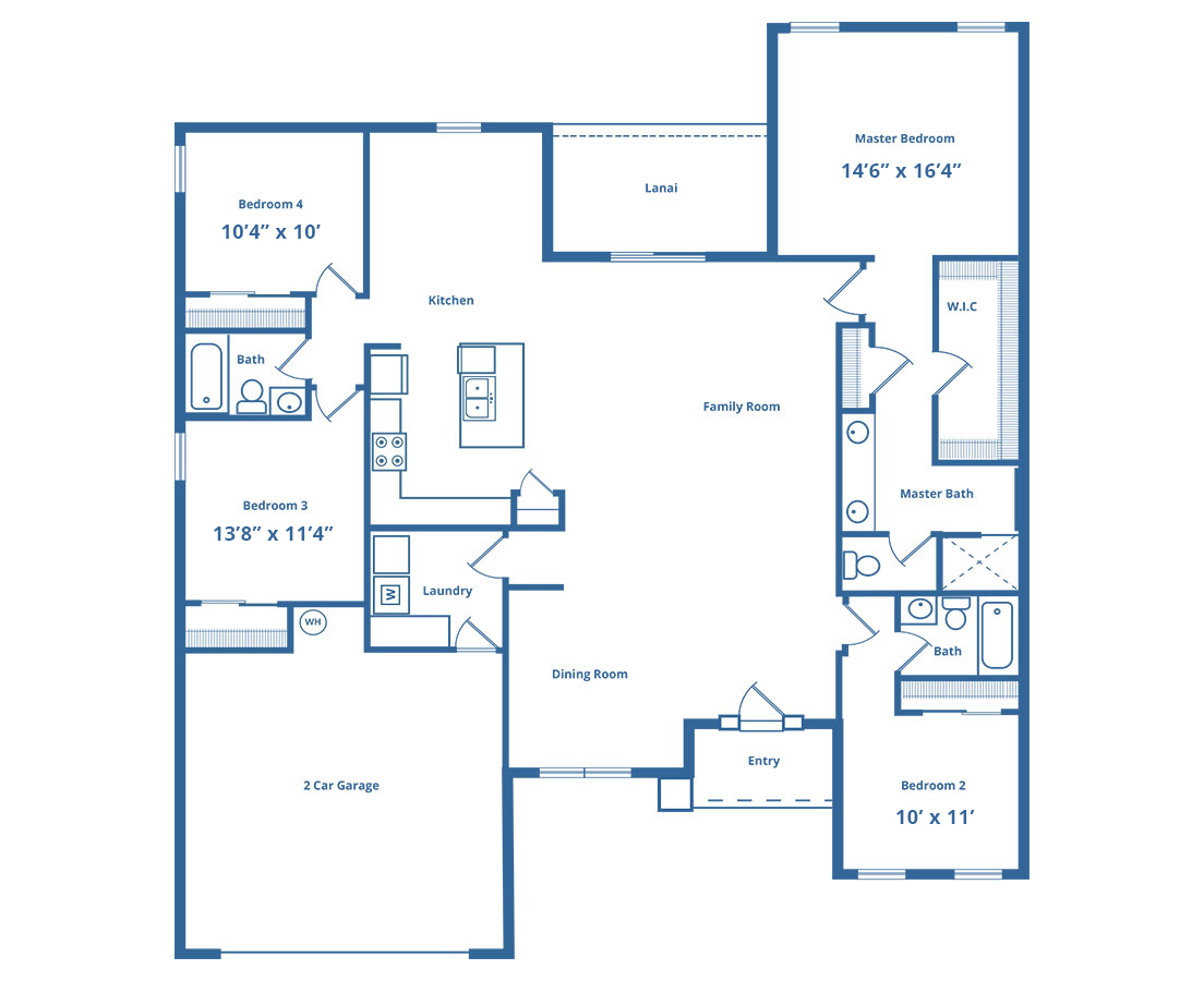Need some extra space? With 2,190 square feet of living space, the Trentino features four bedrooms, three bathrooms, and a lanai large enough to host a party of 15. Throwing an event? Your generous open floor plan allows you to entertain the entire party from the kitchen. The living room area, dining area, and recessed nook provide all the space you need to have a lively event that never feels too cramped. Let the sun pour into your master bedroom, which comes complete with a grand bathroom, separated toilet room, and a walk-in closet that’ll be difficult to fill.